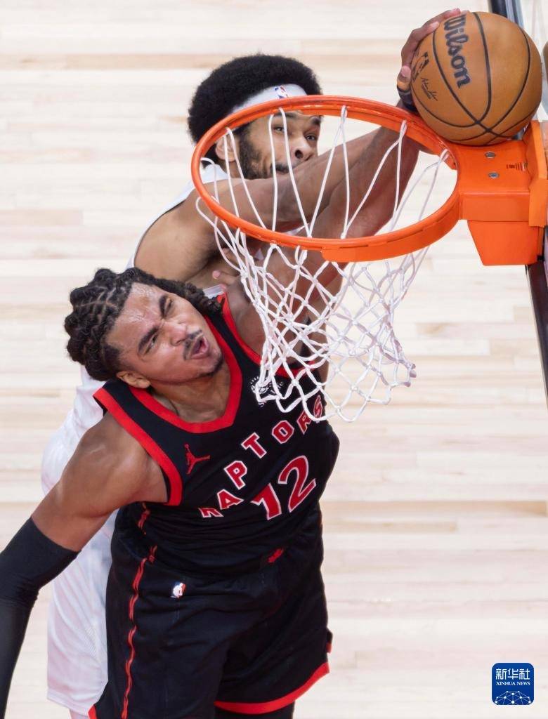 4月23日,猛龙队球员默里-博伊尔斯在比赛中扣篮。